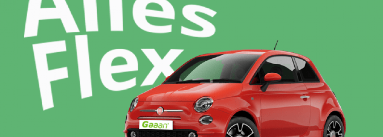 Alles Flex bij Gaaan! Tijdens de Alles Flex weken bieden wij op bijna al onze private lease modellen Flex Lease aan. Dit betekent dat het leasecontract kosteloos opzegbaar is na 12 maanden, zonder afkoopsom en zonder opgaaf van reden.